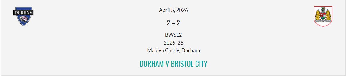 | DUR (H) | 1-1 | 2-2 | 1-2 | 1-1 | 1-1 | 1-1 | 3-0 | 2-1 | 26/4 | 0-0 | 2-3 | |