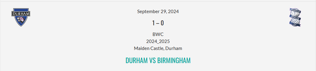 | BIR | BLA | BRI | CHA | DUR | LCL | NEW | POR | SHE | SOU | SUN | |