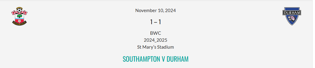 | SOU (H) | 0-2 | 0-1 | 1-1 | 0-3 | 1-1 | 1-4 | 2-2 | 0-0 | 2-0 | 0-2 | |