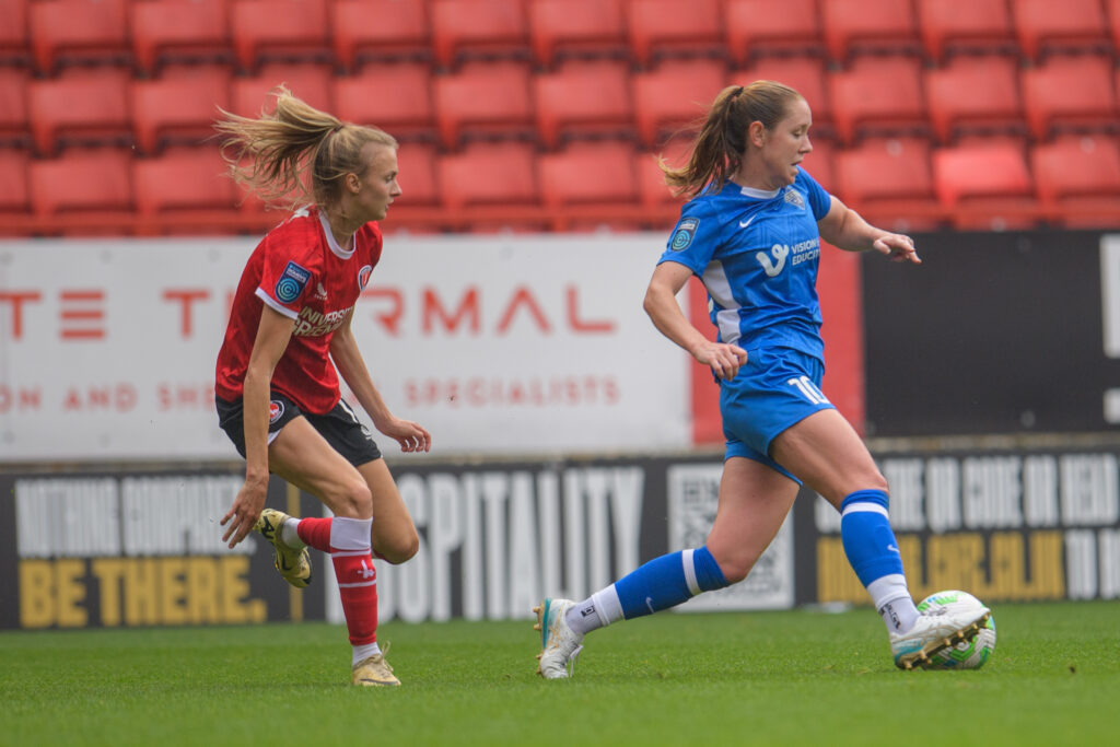 But it was still the visitors creating the better opportunities – Sarah Wilson steered a header narrowly wide from a Beth Hepple free-kick before Hannah Blake was just unable to turn home Carly Johns’ looped cross.