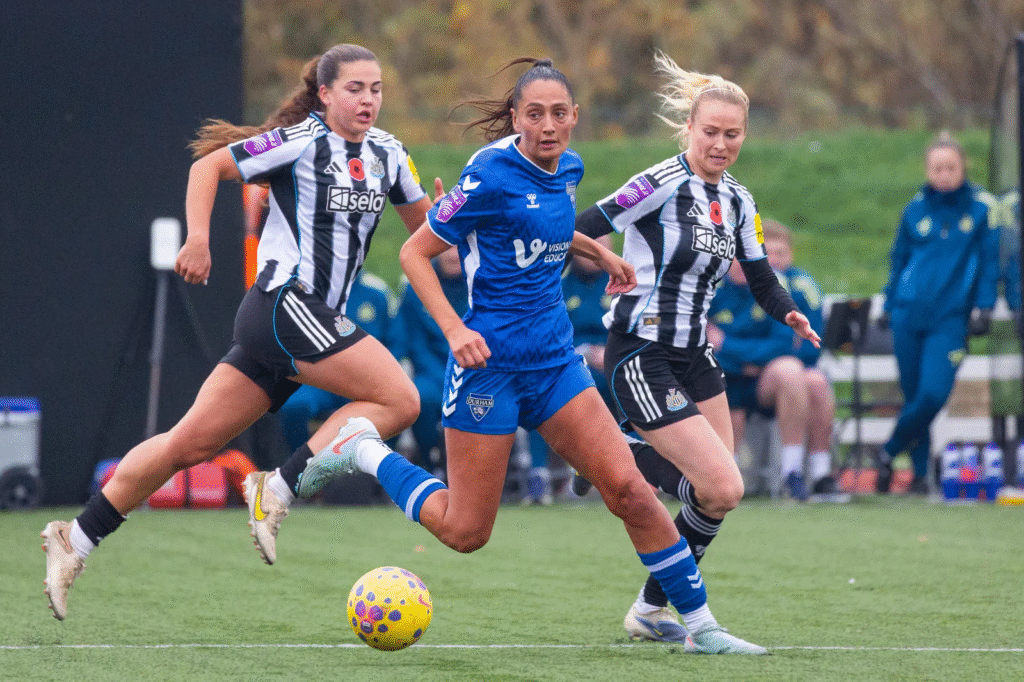Durham found themselves a last gasp opportunity in the 87th minute, with Molly Lambert one on one with the goalkeeper for a second, though an excellent last-ditch challenge from Newcastle’s Aoife Mannion foiled the prospect of three points. A good point nonetheless, against our noisy Tyneside neighbours.